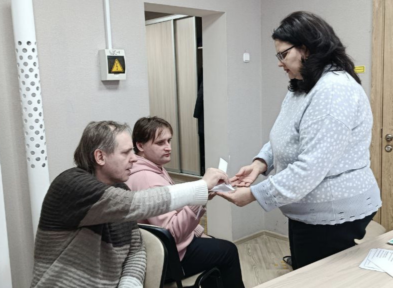 11.02.2026 психолог ТЦСОН Новогрудского района провела занятие с элементами тренинговых упражнений с молодыми людьми с инвалидностью. Цель занятия — отработка уверенного поведения и вежливой коммуникации в жизненных ситуациях.