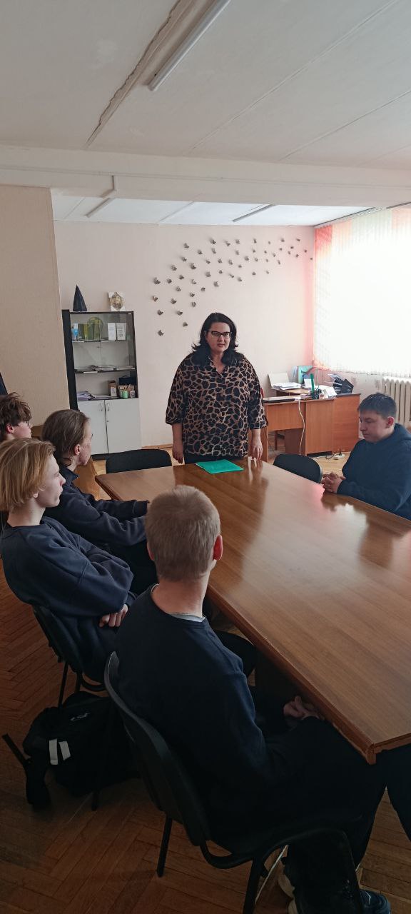На базе Новогрудского государственного колледжа технологий и безопасности 18.02.2026 состоялась встреча с учащимися колледжа, на котором совместно с психологом учреждения здравоохранения Хотяном Р.П. обсуждались вопросы, касающиеся личностного самоопределения молодежи в социуме.