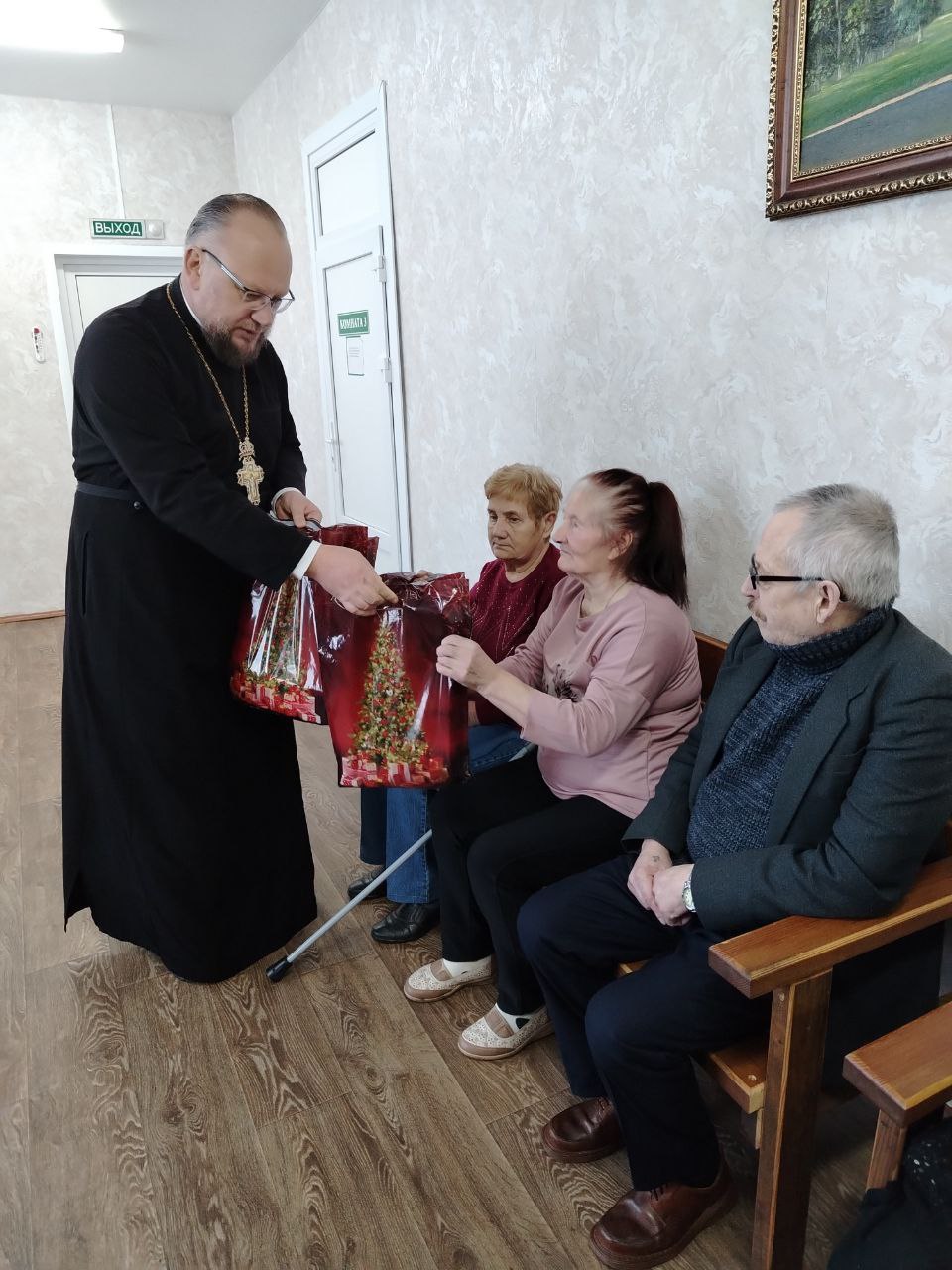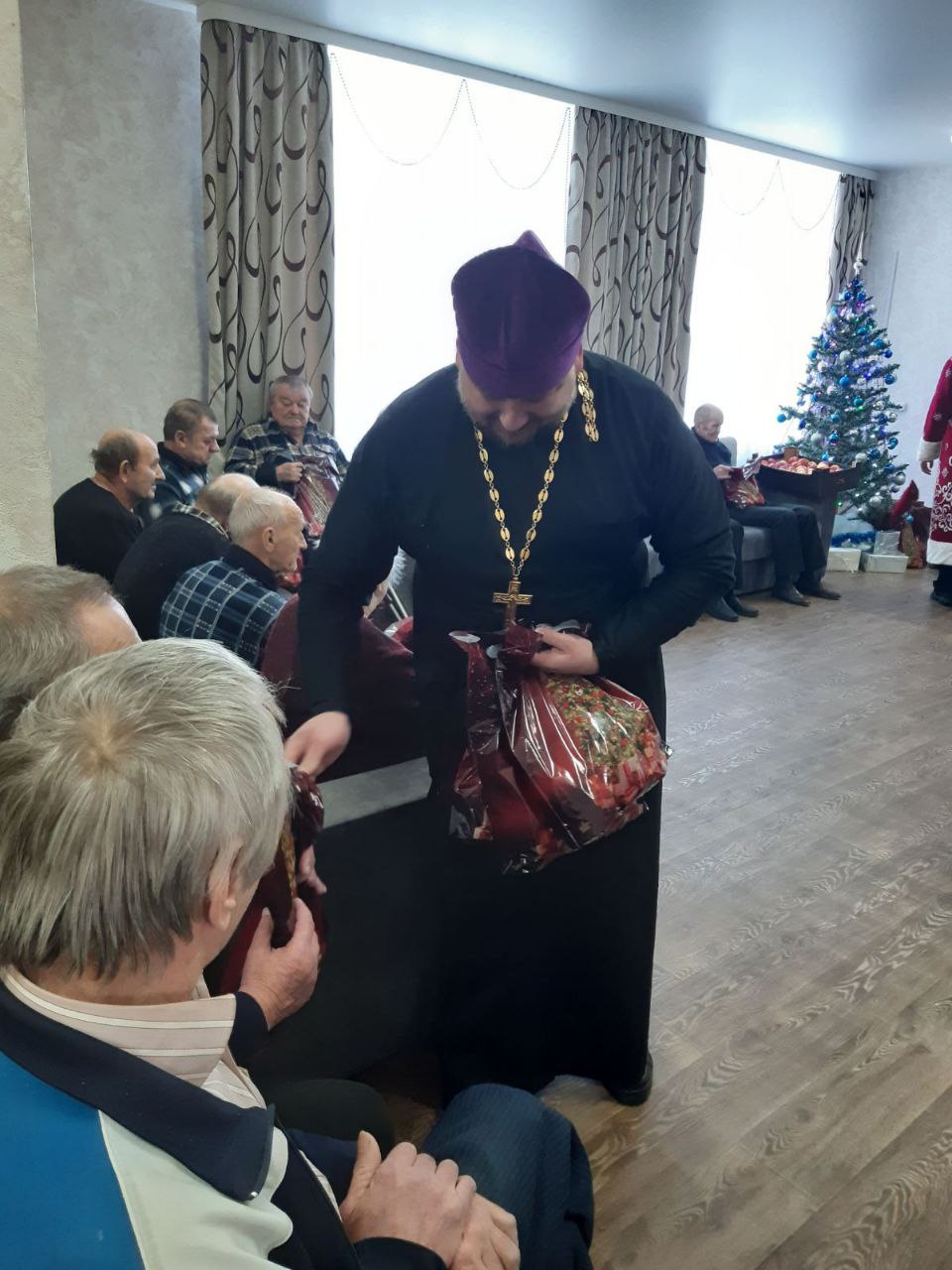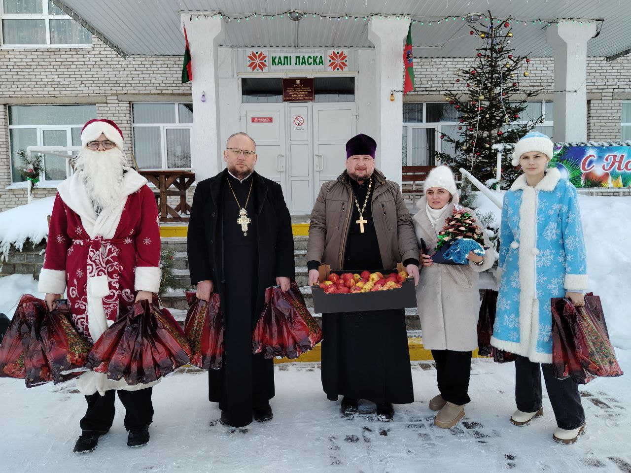 12.01. 2026 г. в рамках республиканской благотворительной акции "От всей души" получателей социальных услуг филиала ТЦСОН Новогрудского района в аг. Брольники посетили учащиеся филиала БГЭУ "Новогрудский торгово-экономический колледж" совместно с настоятелям Свято-Никольского кафедрального собора протоиерем Анатолием Герасимуком и клириком храма иереем Николаем Лащевским. Священнослужители поздравили присутствующих с Новым годом и Рождеством, пожелали крепкого здоровья и вручили сладкие подарки.