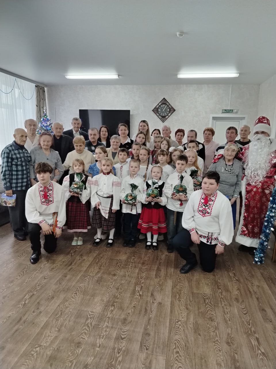 29.12.2025 г. в рамках акции "От всей души" принимали поздравления с наступающим Рождеством и Новым годом получатели социальных услуг филиала ТЦСОН Новогрудского района в аг. Брольники от педагогического коллектива и учащихся государственного учреждения образования "Ладеникская базовая школа ". Кульминацией праздника стало появление Деда Мороза с подарками.