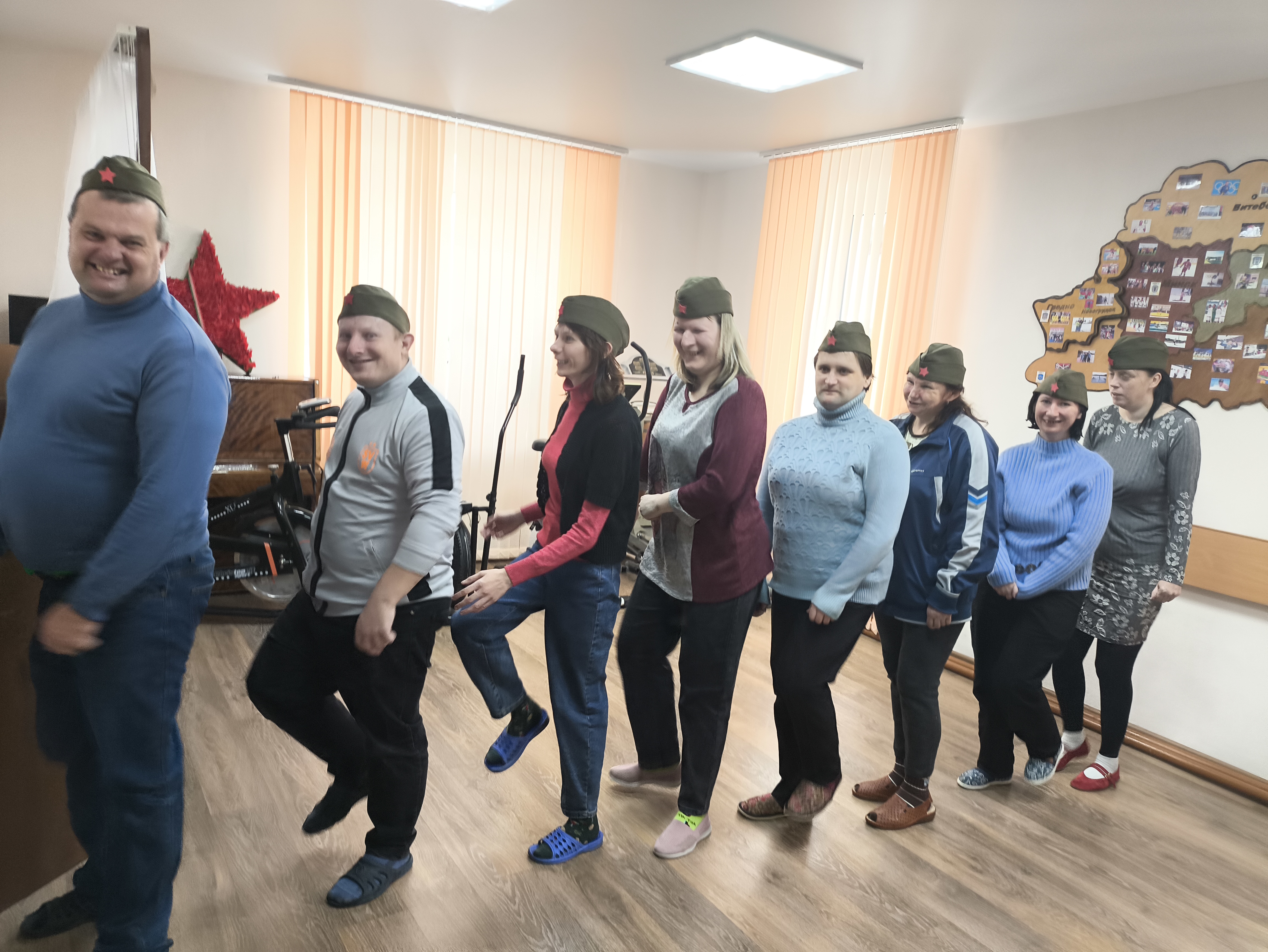 В программу мероприятий вошли: военно-патриотическая игра «Школа молодого бойца», изготовление подарков и приготовление бутербродов. Получатели социальных услуг отделения проявили активность, подарили друг другу хорошее настроение, радость общения и улыбки, показали ловкость, выносливость, смелость и взаимовыручку.