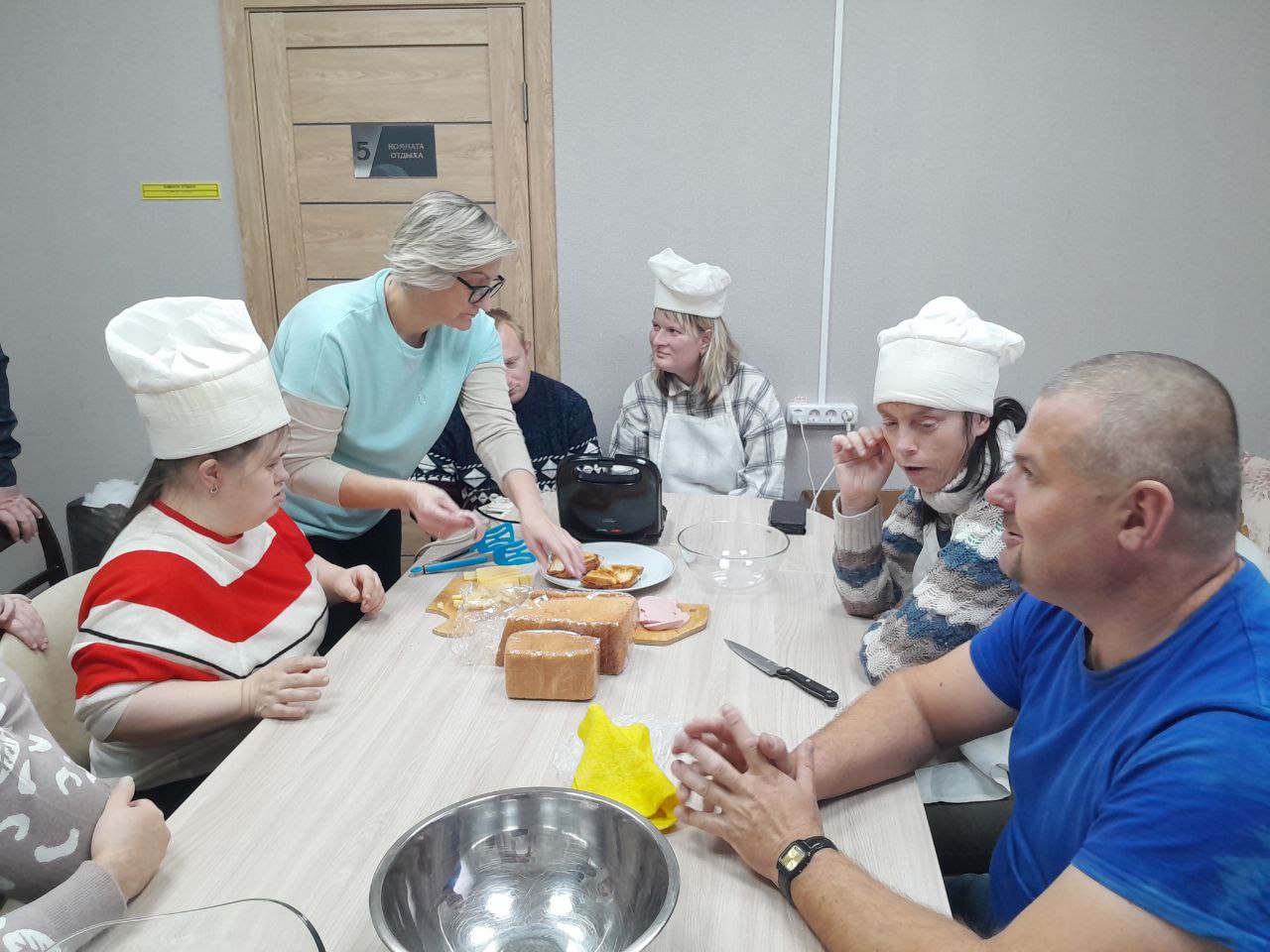 В рамках мини- мастерской "Семицветик" в отделении социальной реабилитации, абилитации инвалидов ТЦСОН Новогрудского района было проведено мероприятие по приготовлению горячих бутербродов.