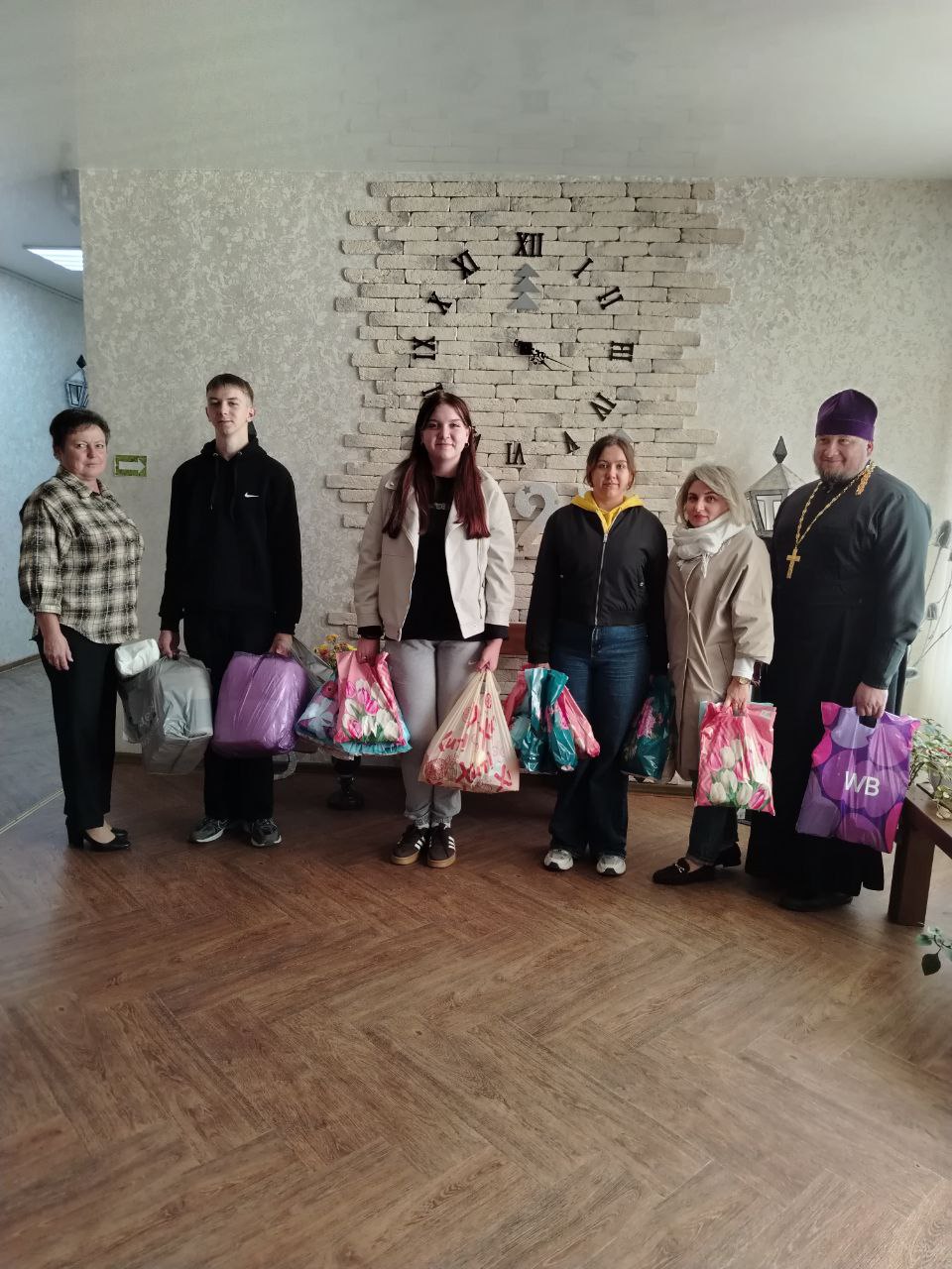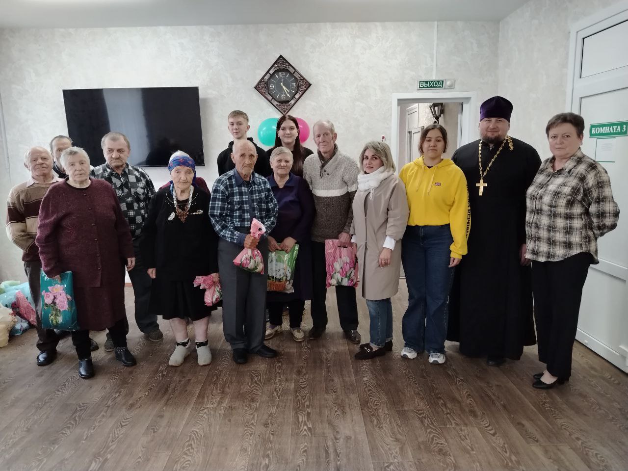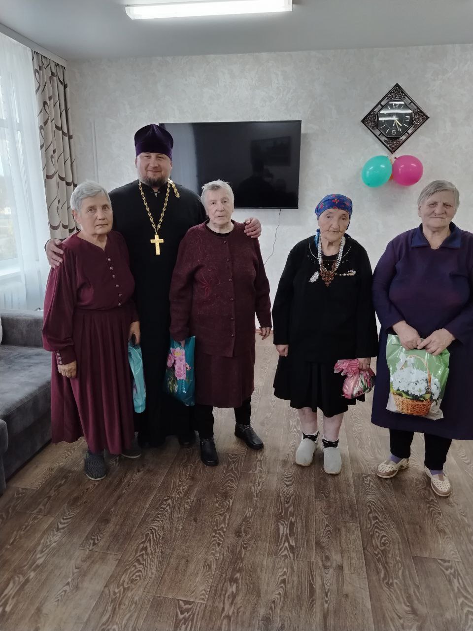 06.10.2025 г. в рамках декады "Золотой возраст", получателей социальных услуг филиала ТЦСОН Новогрудского района в аг. Брольники посетили студенты филиала БГЭУ "Новогрудский торгово-экономический колледж" совместно с клириком Свято-Никольского кафедрального собора иереем Николаем Лащевским. В адрес пожилых граждан прозвучали искренние слова поздравлений и вручены сладкие подарки.