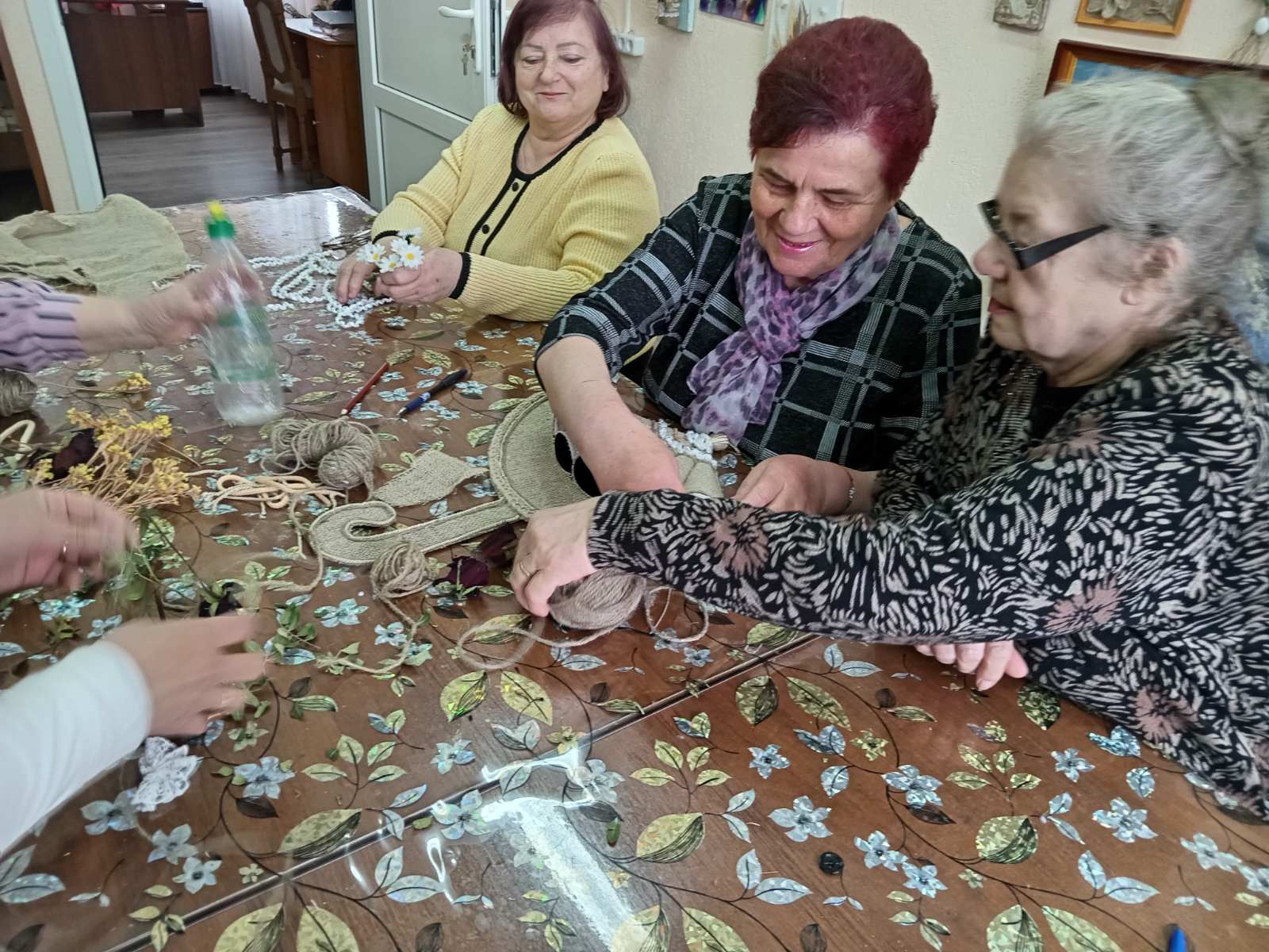 В отделении дневного пребывания для граждан пожилого возраста ТЦСОН Новогрудского района для получателей социальных услуг прошло увлекательное занятие по изготовлению декоративного панно "Зонтик" из мешковины, кружева и джутовой веревки. Мастер-класс был организован с целью развития творческих способностей, мелкой моторики и создания позитивной атмосферы для получателей социальных услуг.