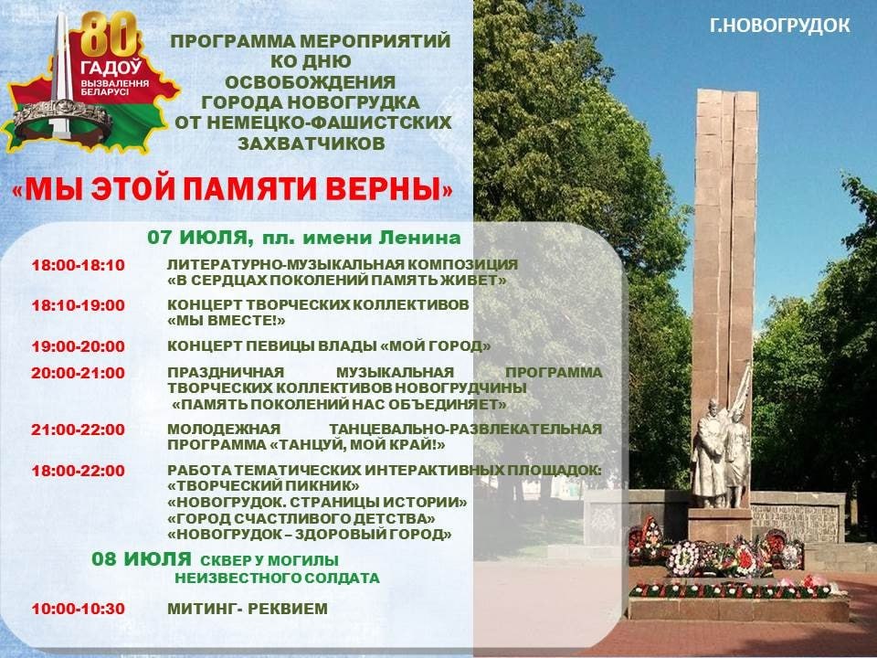 Программа мероприятий ко Дню освобождения города Новогрудка от немецко-фашистских захватчиков