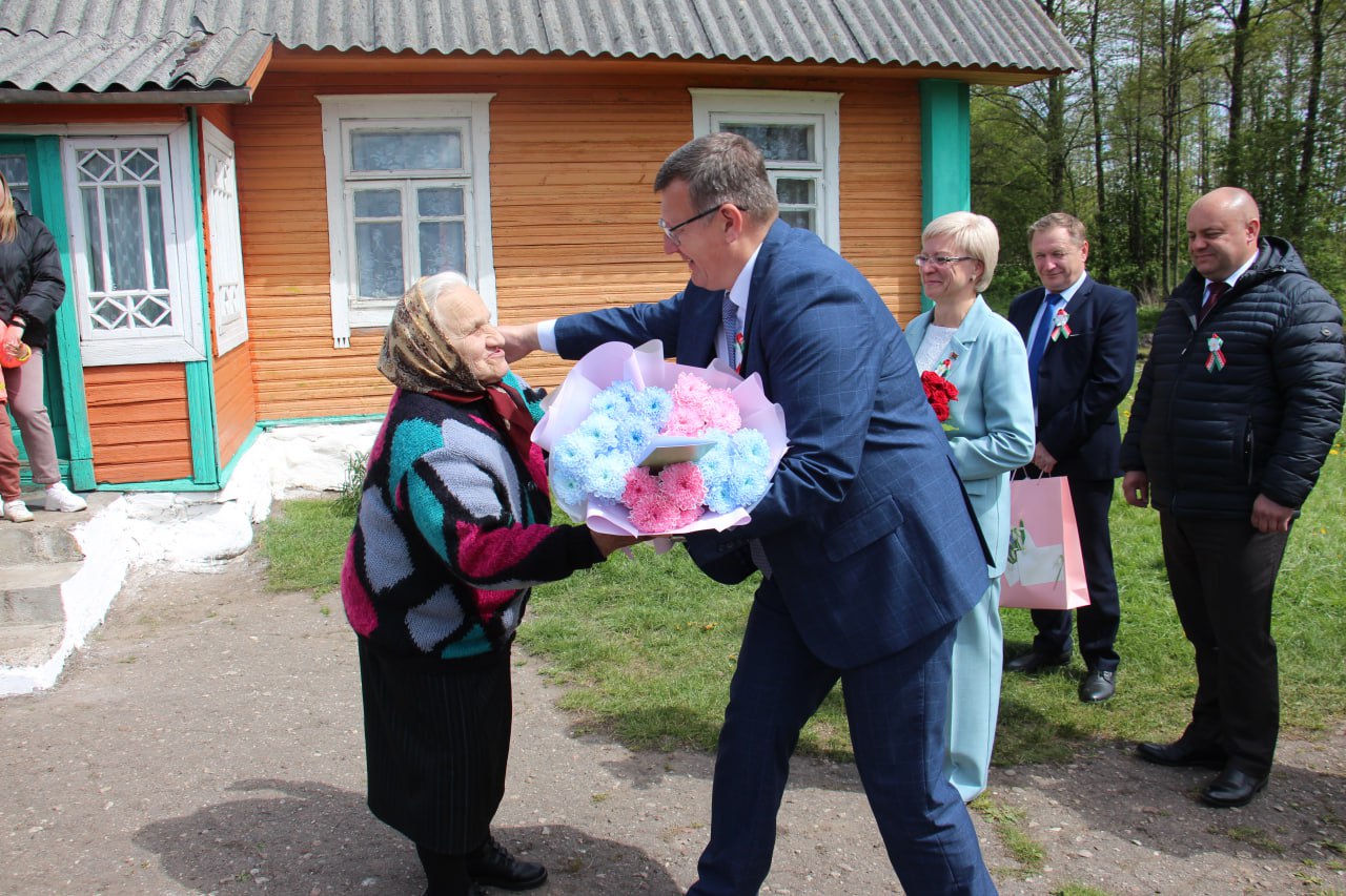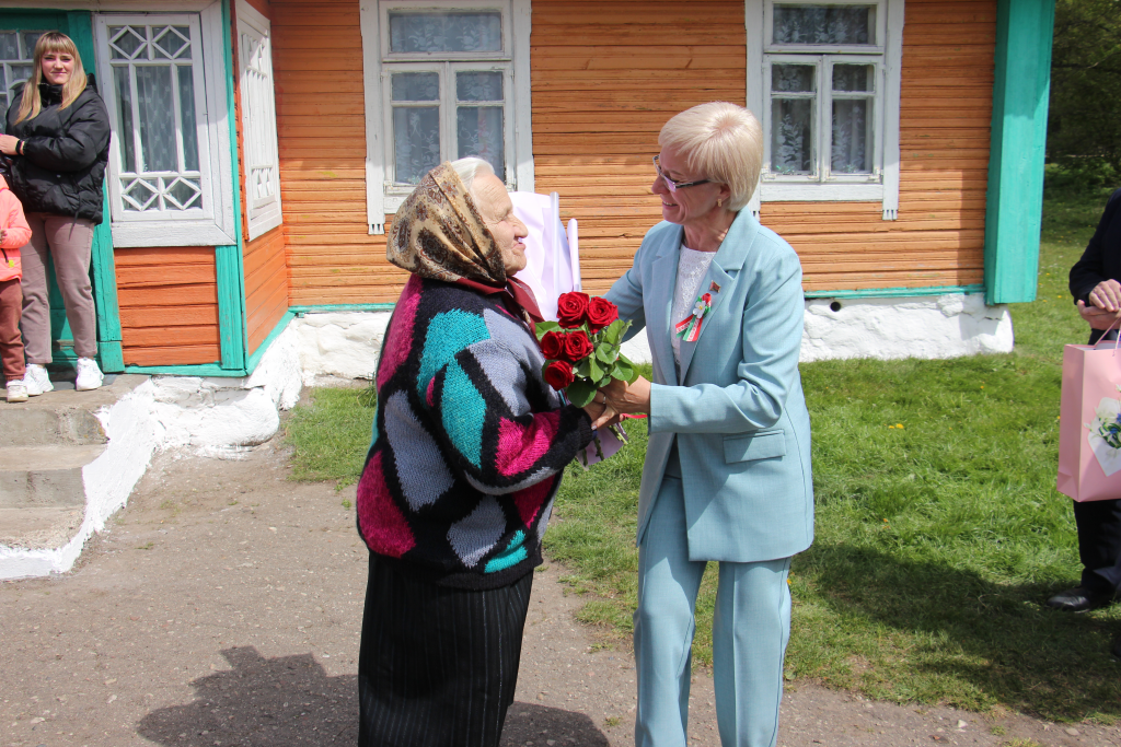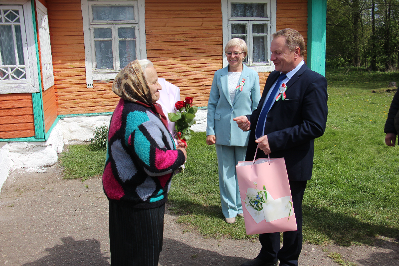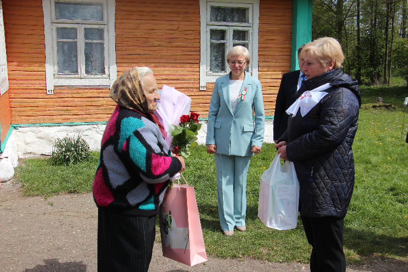 Поздравить единственную жительницу Новогрудского района, которая родилась 9 мая 1945 года, с цветами и подарками приехали председатель Новогрудского районного исполнительного комитета Сергей Чарковский, председатель районного Совета депутатов Светлана Королько, председатель Новогрудской РО РОО «Белая Русь» Эльвира Сороко, председатель Ладеникского сельисполкома Петр Коледюк, директор СУП «АгроМолДар» Олег Шумский и его заместитель Алексей Яхонт.