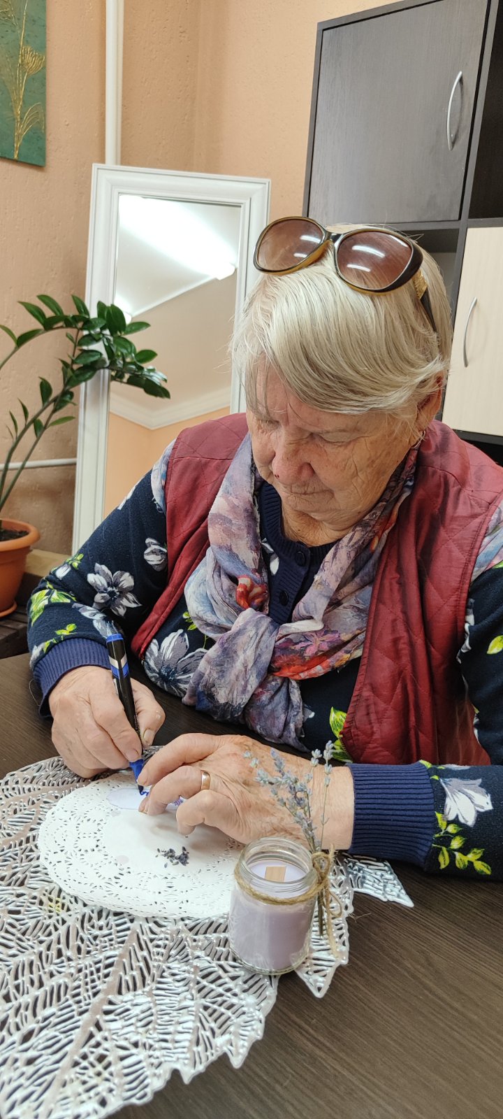 Под таким названием 16 июля прошёл мастер - класс по созданию свечей из соевого воска с ароматом лаванды для получателей социальных услуг отделения дневного пребывания для граждан пожилого возраста ТЦСОН Новогрудского района. Этот мастер- класс не просто занятие, это забота, внимание и возможность проявить свои творческие способности.