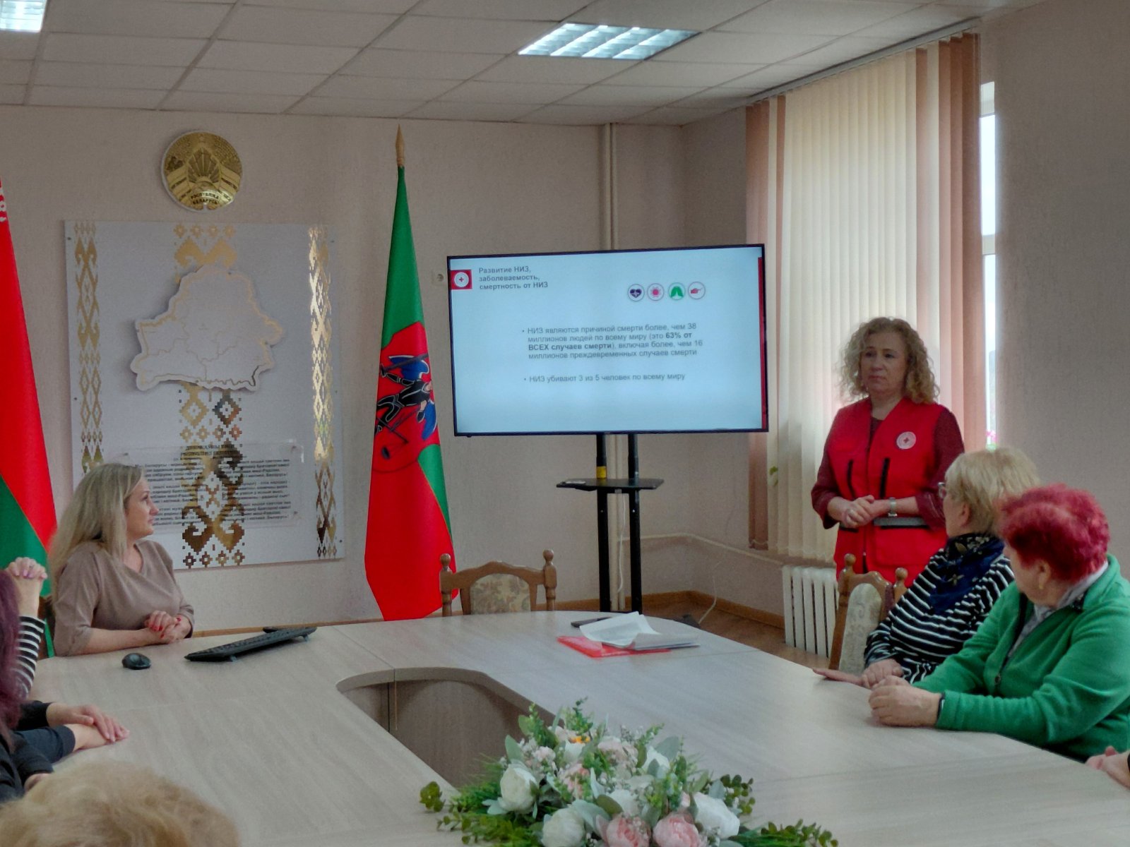 7 апреля, в рамках Всемирного дня здравоохранения, для получателей социальных услуг отделения поддержки активного долголетия в условиях дневного пребывания и реабилитации, абилитации инвалидов состоялась важная и содержательная беседа на тему «Профилактика неинфекционных заболеваний (НИЗ): подход с учетом всех этапов жизни». Почетным спикером мероприятия выступила председатель районной организации Белорусского Общества Красного Креста Людмила Оскирко.