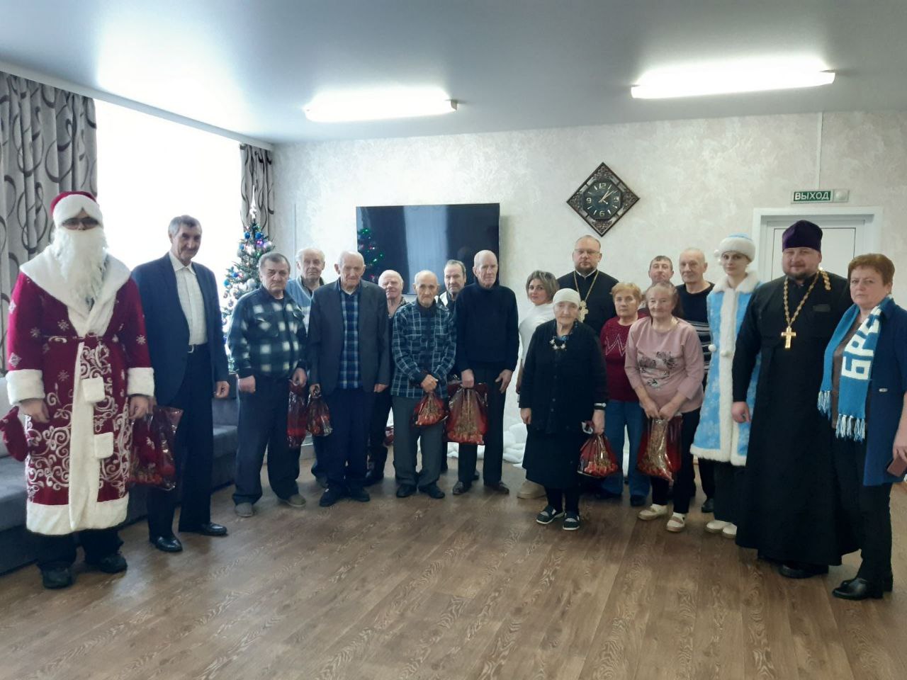 12.01. 2026 г. в рамках республиканской благотворительной акции "От всей души" получателей социальных услуг филиала ТЦСОН Новогрудского района в аг. Брольники посетили учащиеся филиала БГЭУ "Новогрудский торгово-экономический колледж" совместно с настоятелям Свято-Никольского кафедрального собора протоиерем Анатолием Герасимуком и клириком храма иереем Николаем Лащевским. Священнослужители поздравили присутствующих с Новым годом и Рождеством, пожелали крепкого здоровья и вручили сладкие подарки.
