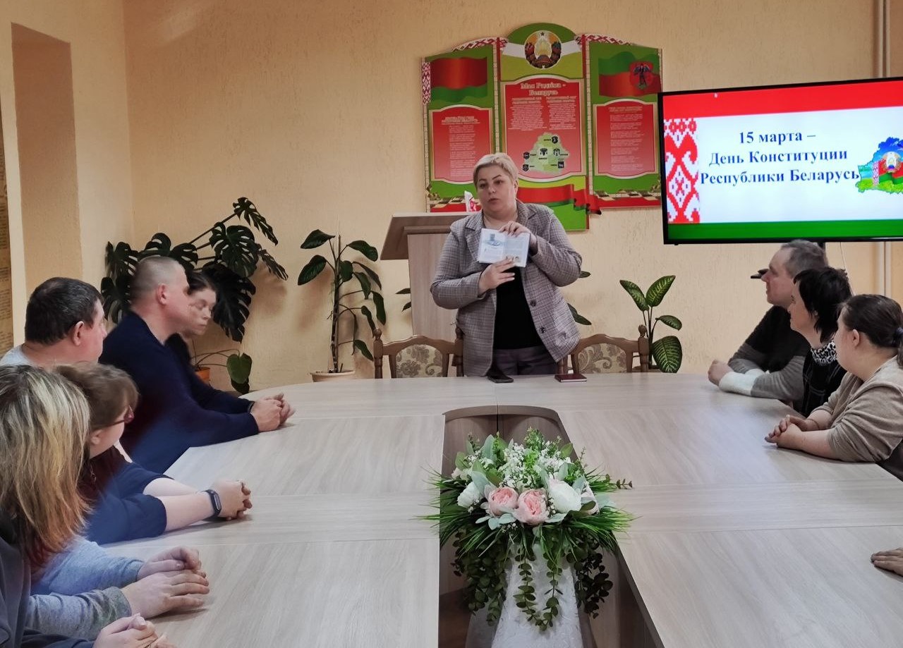 15 марта в нашей стране отмечают один из главных государственных праздников – День Конституции Республики Беларусь. В этом, 2025 году, исполняется 31 год Основному закону страны, имеющему высшую юридическую силу и закрепляющему основополагающие принципы и нормы правового регулирования важнейших общественных отношений. С целью формирования у посетителей отделения социальной реабилитации, абилитации инвалидов правовой культуры, активной гражданской позиции, понимания сущности и значения Конституции Республики Беларусь в отделении состоялось мероприятие, посвященное Дню Конституции Республики Беларусь.