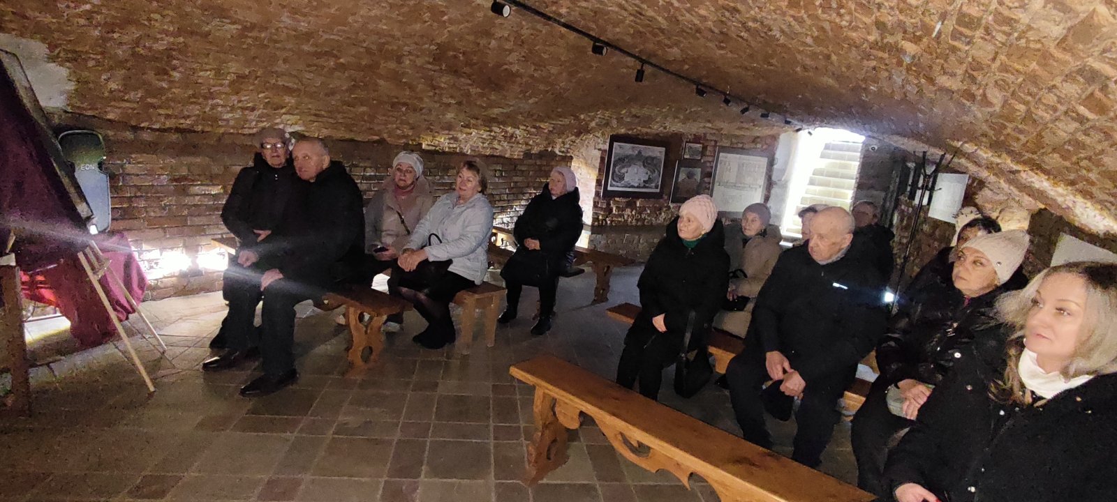 Ксенз Павел провел нам экскурсию с посещением крипты — подземные помещения с захоронениями монахов-доминиканцев и фундаторов костёла из рода Ходкевичей, где увидели экспозиции, посвященные истории города, гербы, церковные реликвии и даже гробы с останками, так же насладились прослушиванием органной музыки. Новогрудские крипты, являющиеся единственными в Беларуси.