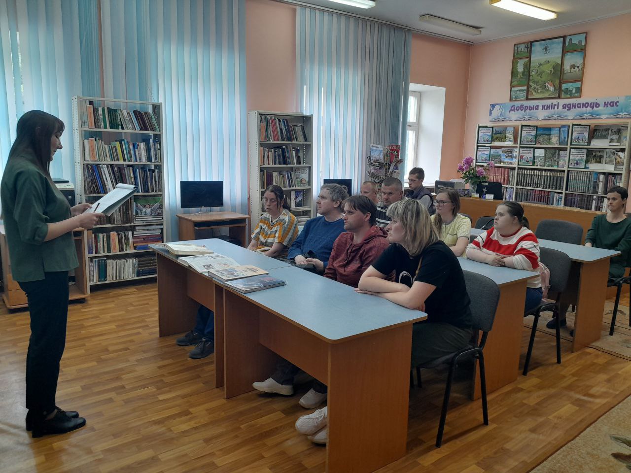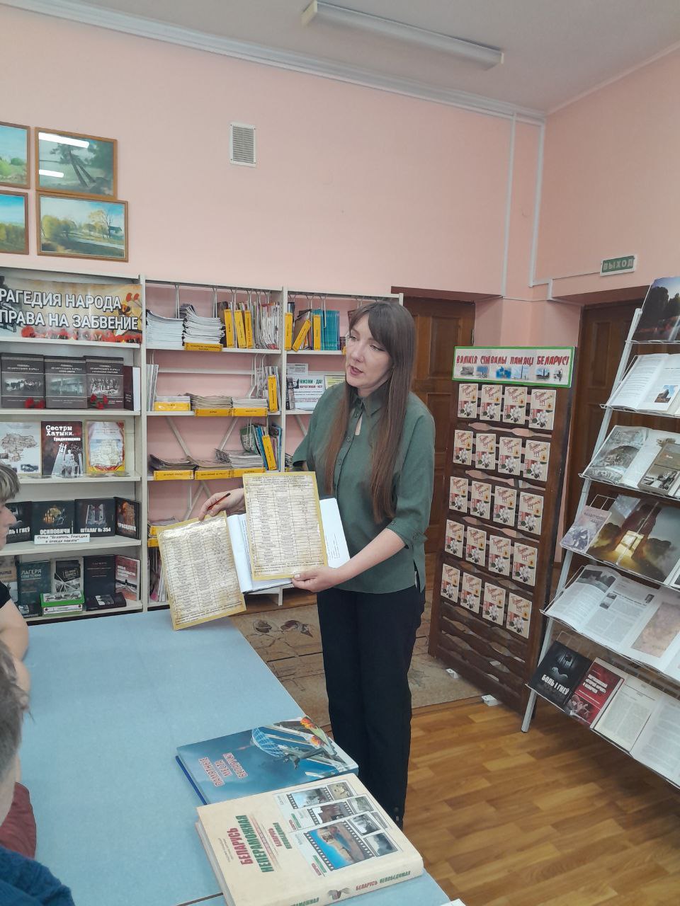 Тема разговора-начало войны. Участники мероприятия вспомнили о ветеранах-земляках, которые воевали за мирное небо над головой. Заведующий отделом обслуживания и информации ГУК "Новогрудская районная библиотека" Светлана Константиновна Чубрик сделала обзор книжной выставки, на которой представила литературу, которая рассказывает о тех трагических событиях.