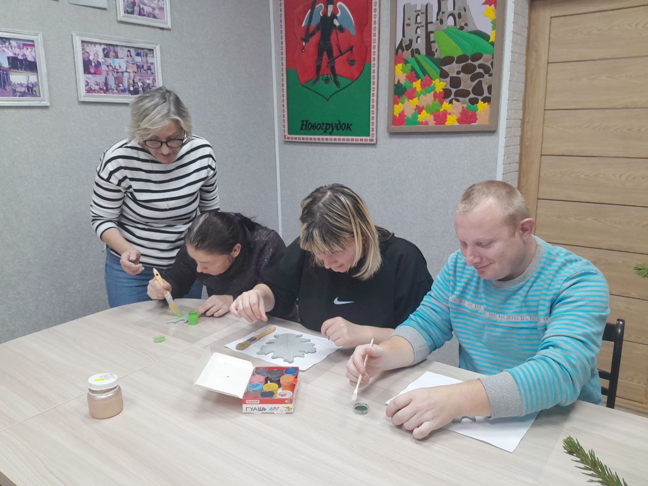 Получатели социальных услуг отделения социальной реабилитации, абилитации инвалидов ТЦСОН Новогрудского района смастерили осенние листья из глины. Занятие проводилось в несколько этапов: изготовление слепка из глины, сушки, раскрашивание изделия.