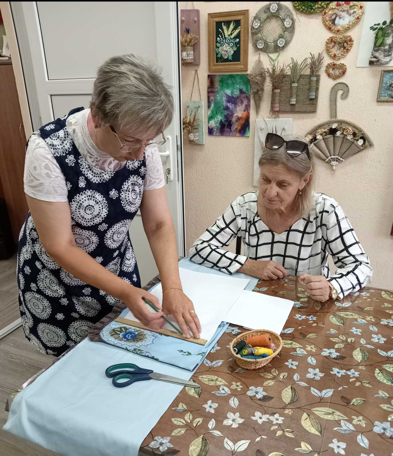 21.07.25г в отделении дневного пребывания для граждан пожилого возраста ТЦСОН Новогрудского района прошло индивидуальное занятие в кружке "Мастерица" на тему: "Крой и пошив кухонного фартука"