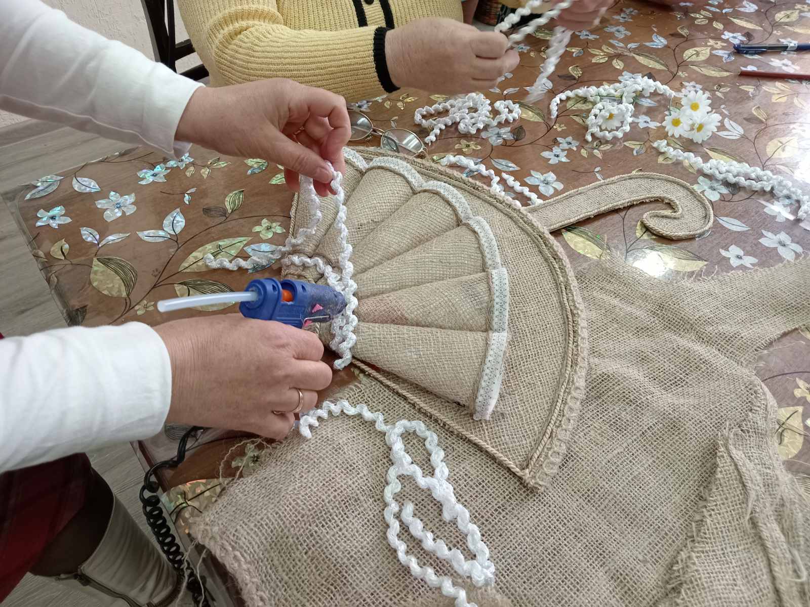В отделении дневного пребывания для граждан пожилого возраста ТЦСОН Новогрудского района для получателей социальных услуг прошло увлекательное занятие по изготовлению декоративного панно "Зонтик" из мешковины, кружева и джутовой веревки. Мастер-класс был организован с целью развития творческих способностей, мелкой моторики и создания позитивной атмосферы для получателей социальных услуг.