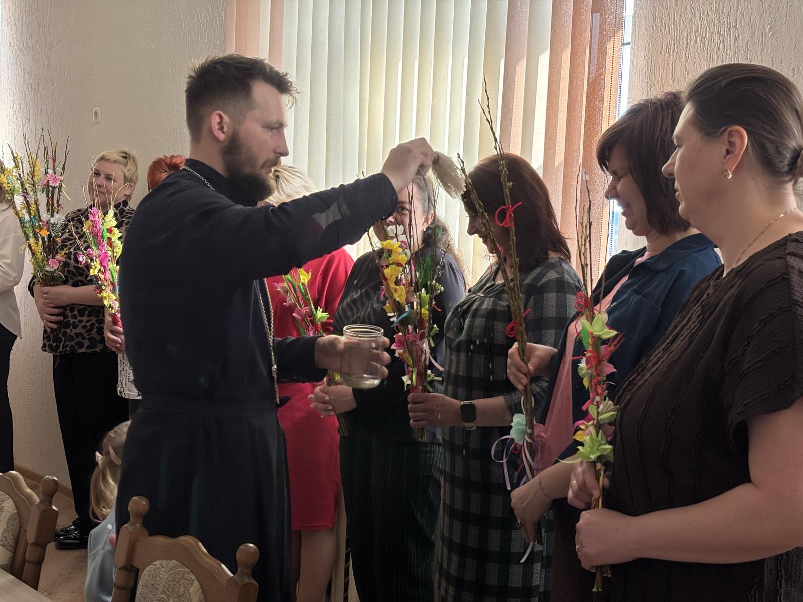 Священнослужитель провел просветительскую беседу на тему: «Почему верба стала символом православного праздника». В завершение встречи отец Евгений совершил чин освящения верб. Совместное мероприятие было направлено на духовную поддержку и укрепление традиционных культурных ценностей.