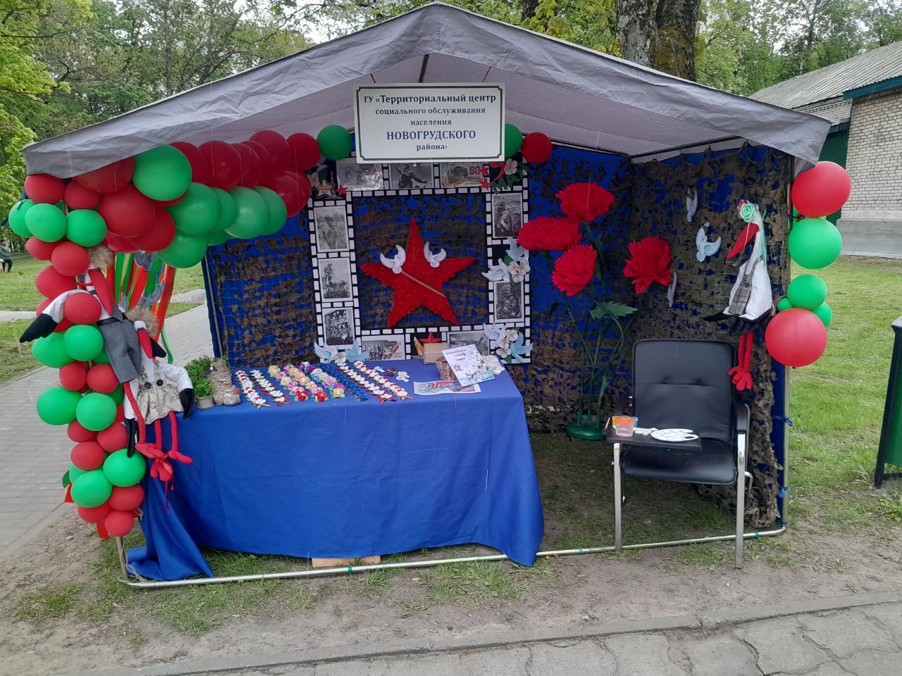 9 мая, в день Победы, в память о своих дедах и прадедах на территории городского парка в рамках районного праздника «Поклон и память поколений» работниками отделения социальной реабилитации, абилитации инвалидов ТЦСОН Новогрудского района организована работа тематической интерактивной площадки "Этот день Победы".