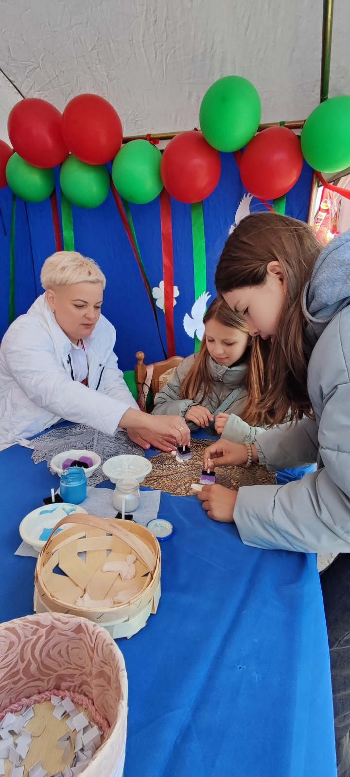 Территориальным центром социального обслуживания населения Новогрудского района была представлена интерактивная площадка "Мир!Труд!Май!", где каждый желающий мог принять участие в мастер-классе по раскрашиванию символа весны и труда- птицы голубя.