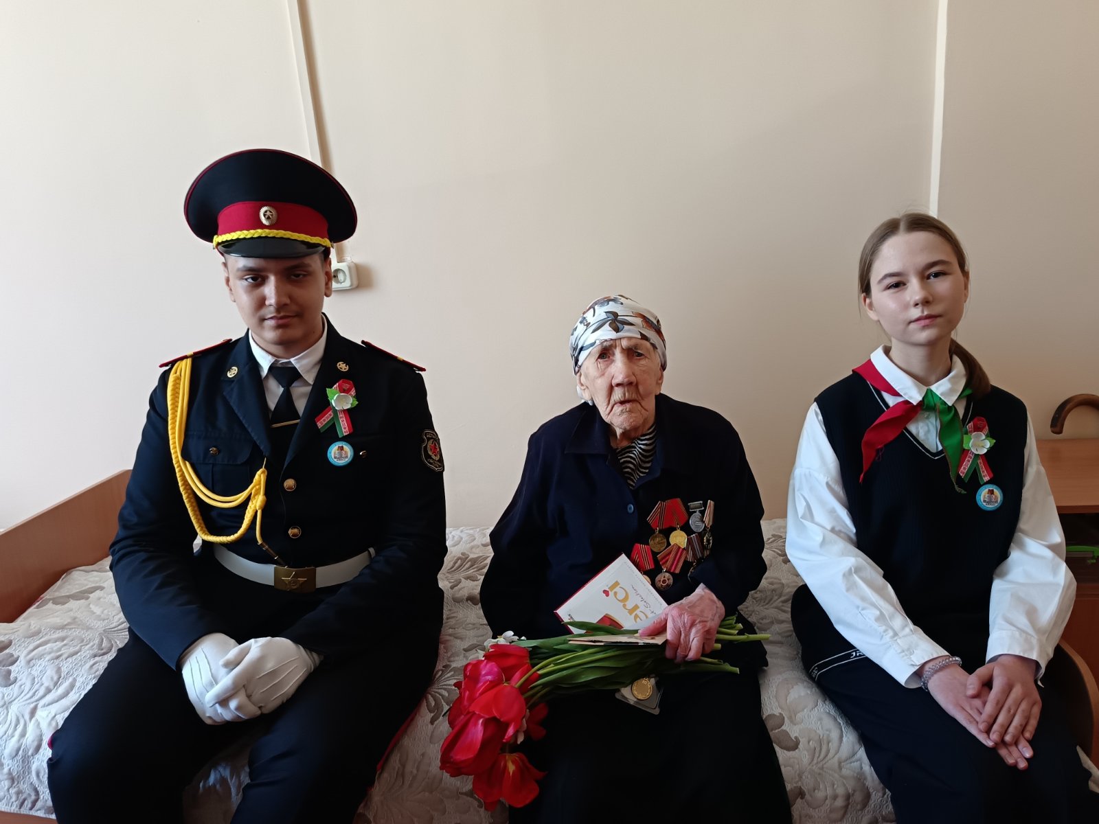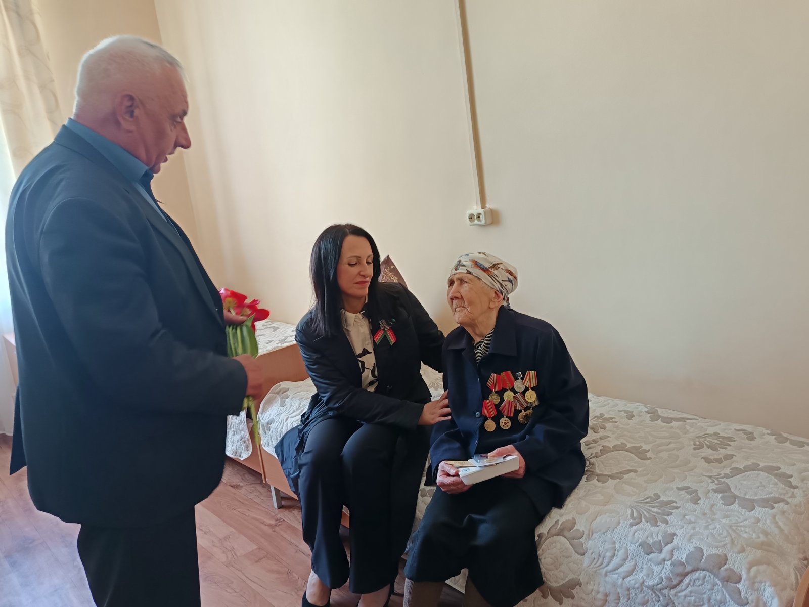 Поздравить Олимпиаду Михайловну пришли Ж.И.Кавлюкевич – начальник управления по труду, занятости и социальной защиты Новогрудского РИК, Конончук Г.И. – председатель Новогрудской районной организации Белорусского общественного объединения ветеранов, учащиеся Средней школа №7 г.Новогрудка