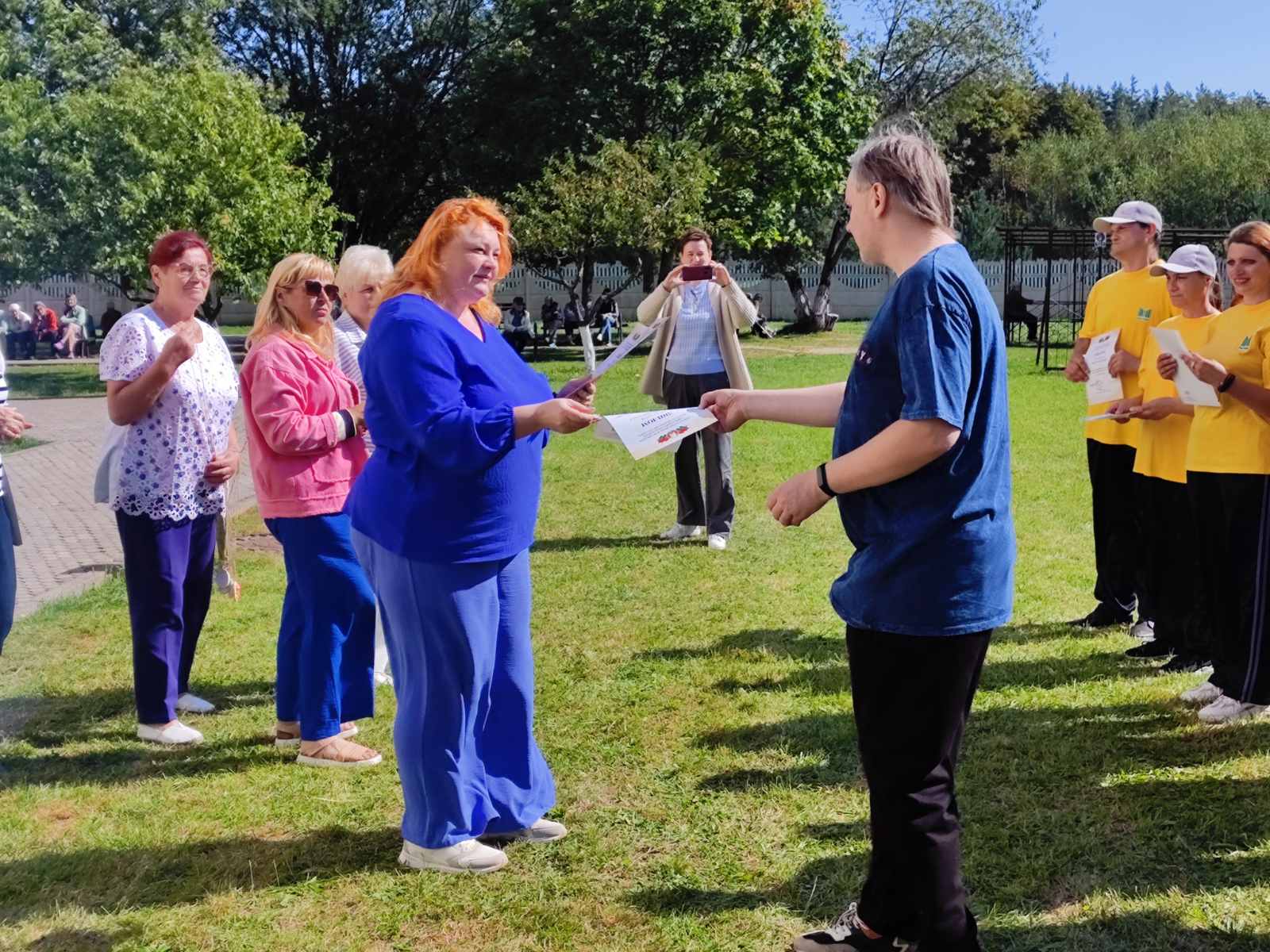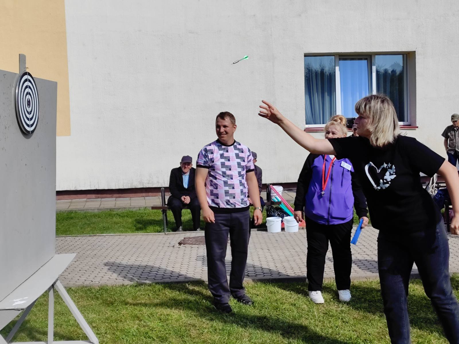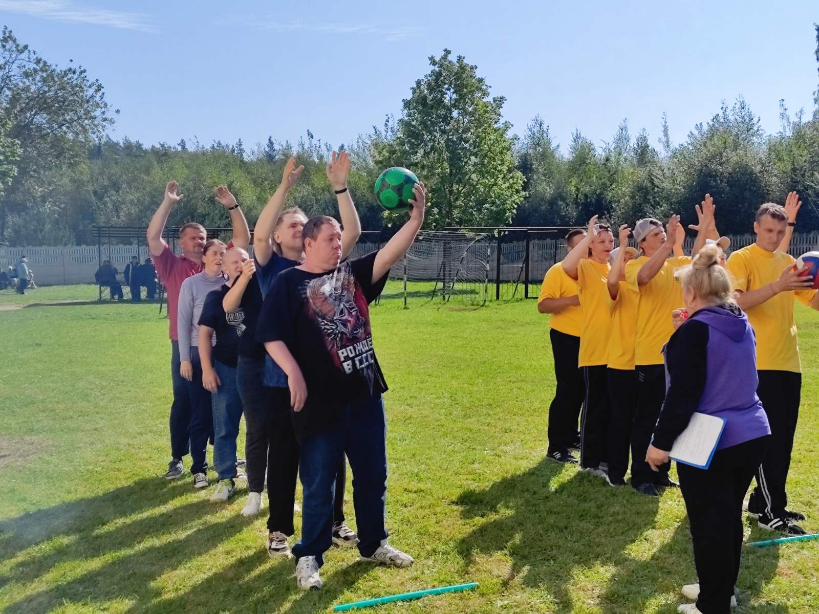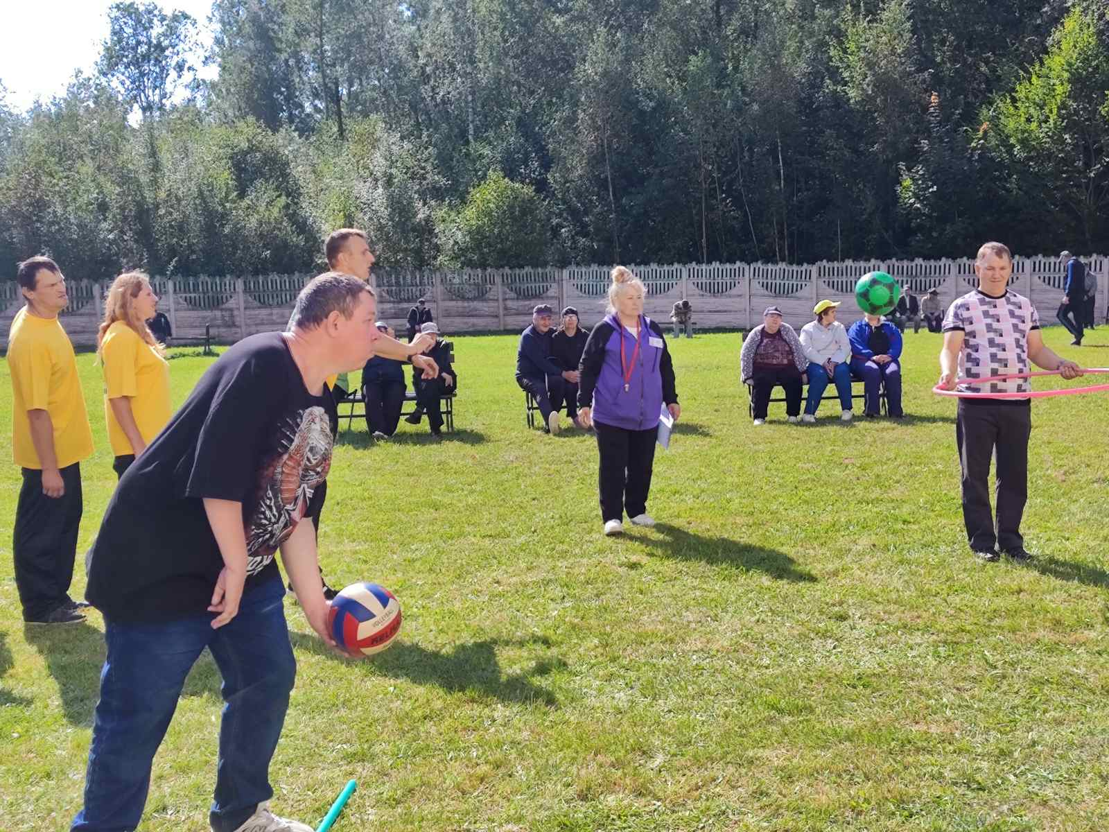 10 сентября 2025 года на базе ГУ "Новогрудский социальный пансионат "Аксамит" прошло спортивное состязание по подвижным играм "Стартуют все" среди получателей социальных услуг пансионата "Аксамит" и отделения социальной реабилитации, абилитации инвалидов ТЦСОН Новогрудского района.