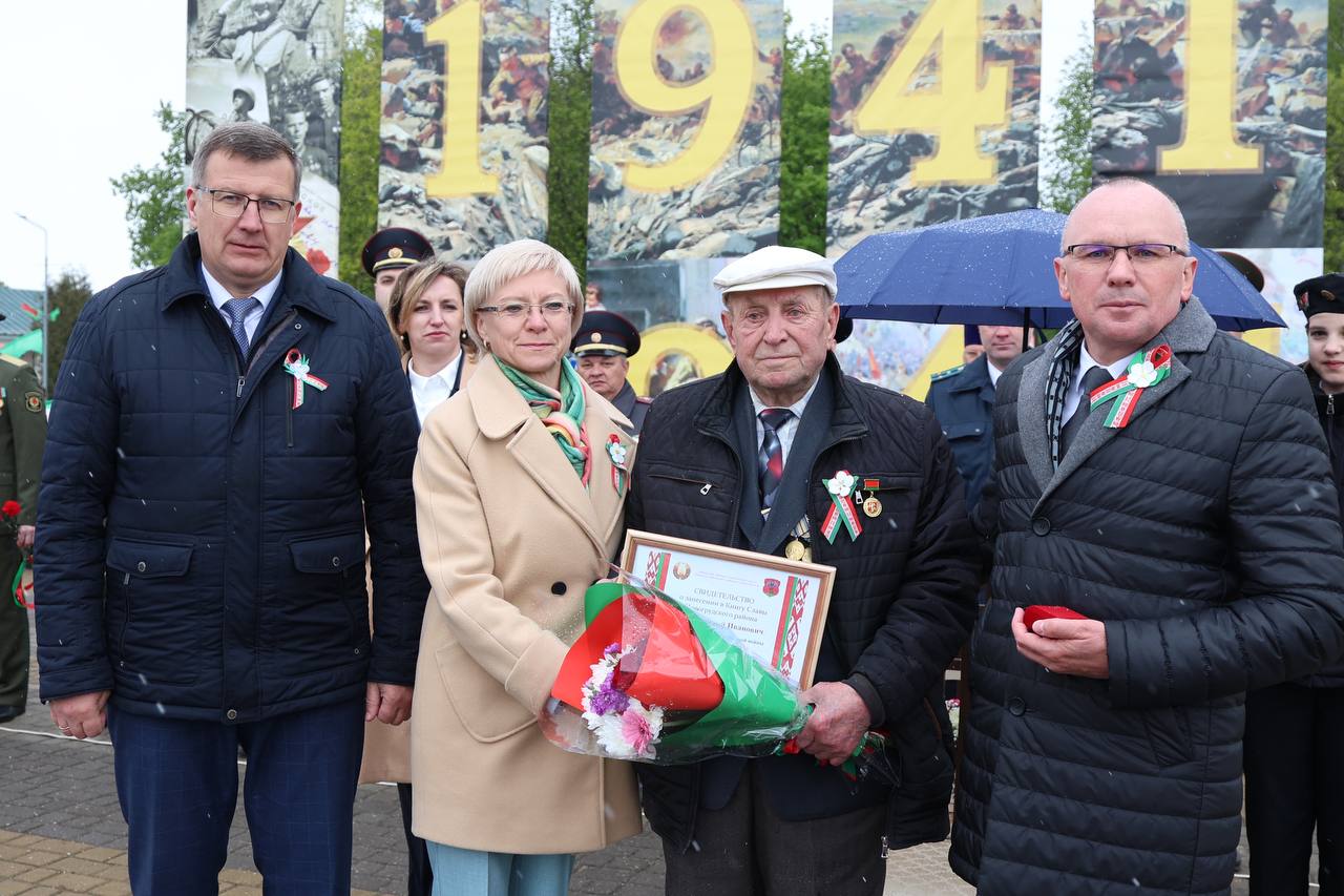 Его глаза свидетельствуют о том, что он прошел через ужас войны, но не потерял человечности и веры в светлое будущее. В знак благодарности ветерану были вручены цветы и подарок. Николаю Ивановичу в торжественной обстановке вручили свидетельства о присвоении звания «Почетный гражданин Новогрудского района».